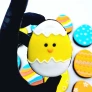 Le panier d'oeufs est composé de six biscuits artisanaux au bon goût de chocolat et décorés à la glace royale.